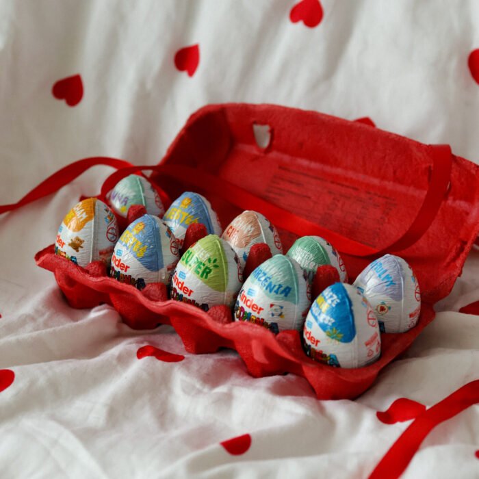 15 klasycznych jajek z mlecznej czekolady w eleganckim, gotowym do podarowania opakowaniu. Uniwersalny prezent dla każdego – na co dzień i od święta. Idealnie komponuje się z bukietem kwiatów.