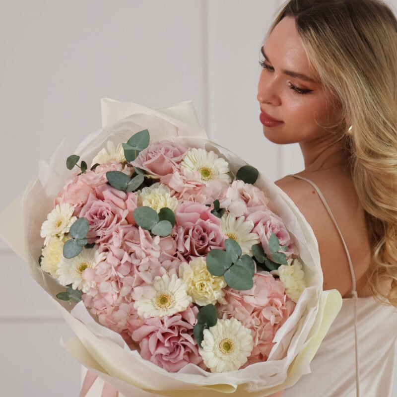 від 185 PLNБукет з гортензіями та гіллястими трояндами